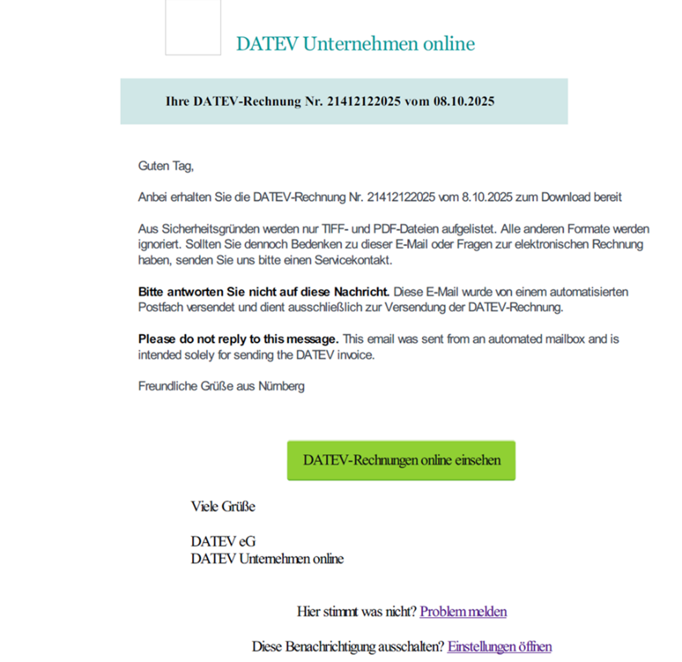 👉 Mehr Informationen direkt bei DATEV: Aktuelle Betrugsversuche im DATEV-Kontext